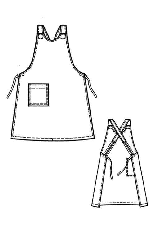 Фартук с цельновыкроенным нагрудником, накладным карманом.