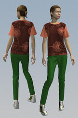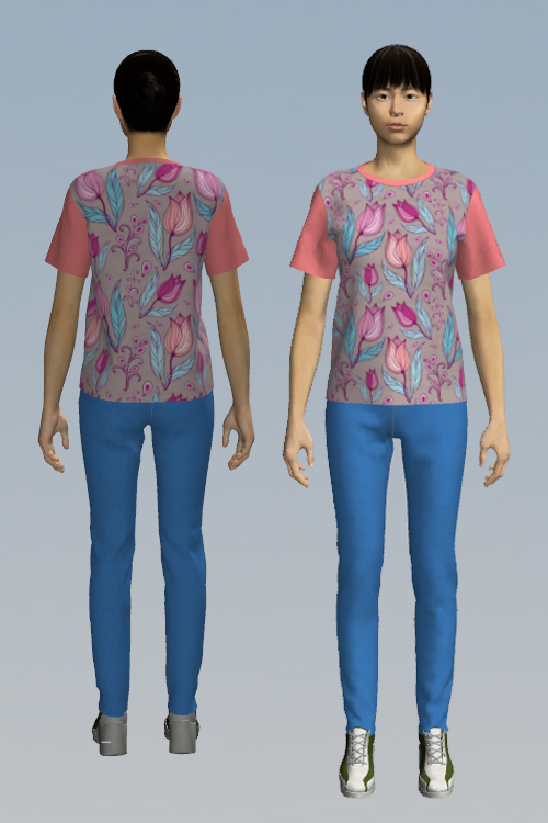 Низ рукавов и изделия обработан швом вподгибку с открытым срезом.