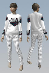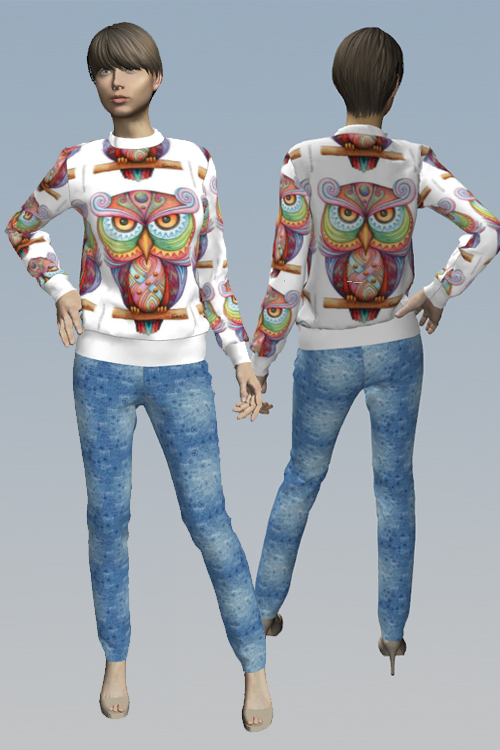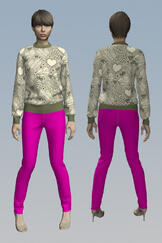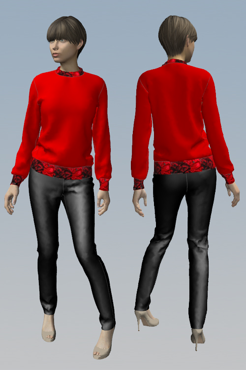 Нижний срез изделия, рукавов и горловина обработаны трикотажным полотном
