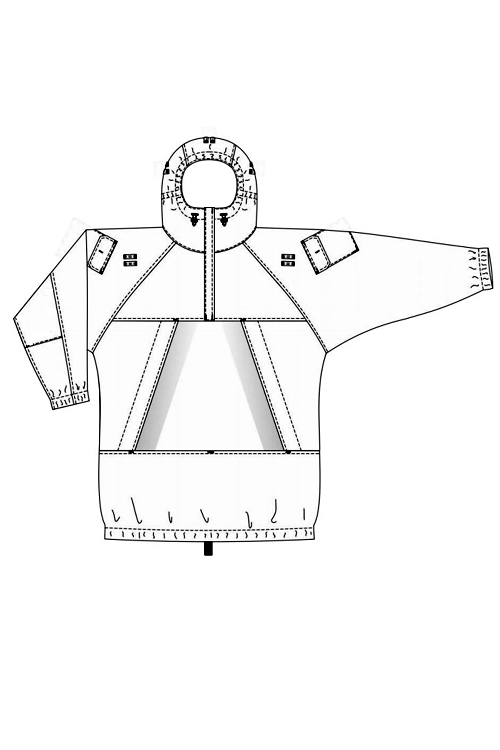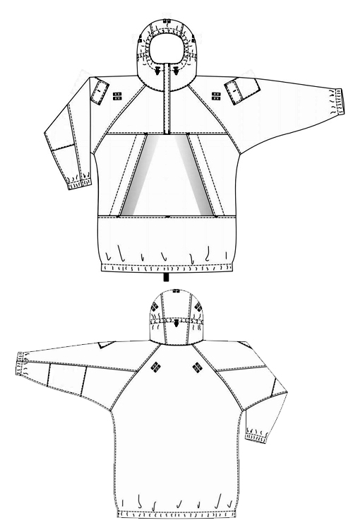 Застежка центральная на тесьму-«молния» от нижнего среза кокетки переходящая на капюшон.