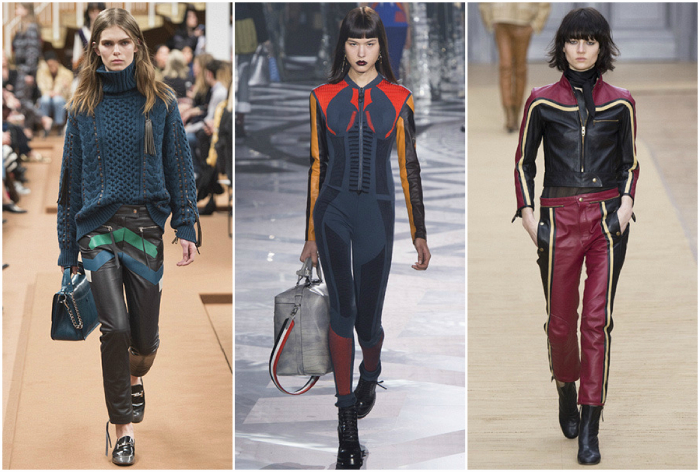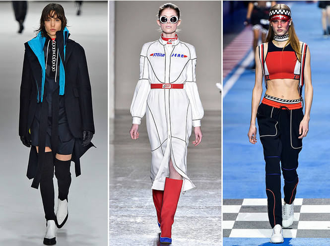 Стили, сделанные в автоспорте, не новы для моды в недавней памяти, а Vetements включает в себя гоночную эстетику еще весной 2016 года и Supreme. Но в этом сезоне оказалось, что мотивы автоспорта набирают еще больший импульс. Совсем недавно появилась коллекция Ryananna Spring 2018 для Fenty Puma, а также Томми Хилфигер и Гиги Хадид сосредоточили свою заключительную коллективную коллекцию на тему, с множеством гоночных брюк и куртки, спускающихся по взлетно-посадочной полосе. В «Белоснежной» тенденция была более тонко исследована, и несколько взглядов, которые имитировали обтекаемые костюмы, которые носят гоночные профессионалы. И в Versus Versace черно-белая проверка авто-гоночных флагов была широко использована на куртках, брюках, кожаных куртках и многом другом.