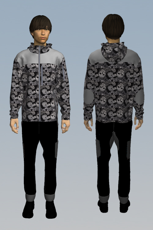 Воротник стойка. Капюшон двухшовный с отрезным козырьком. Врезные карманы застегиваются на тесьму-«молния».