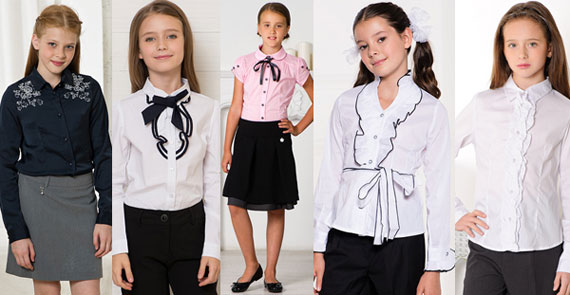 Без сомнений девочки, это самые главные модницы в школе. И дизайнеры не стоят на месте, а с каждым годом усовершенствуют и дополняют новинками гардероб школьников. Особое внимание уделяются блузам, это один из главных элементов школьной формы, поскольку его носят не только с юбками и брюками, но и под модненькие сарафанчики. В этом году модной считаются блузы декорированные разнообразными жабо, вставки из кружева и рюш, завязочки на элегантный бант.