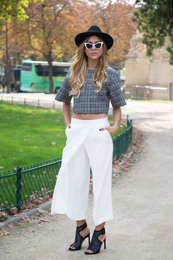 Но все же давайте разберемся как выглядят брюки кюлоты и с чем их лучше носить.