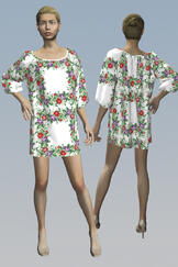 Горловина и низ рукава со сборкой, обработаны окантовкой.