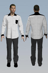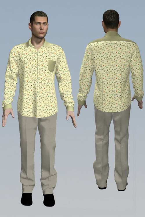 На передней половине без складок и выточек, два боковых кармана с бочками – подзорами.