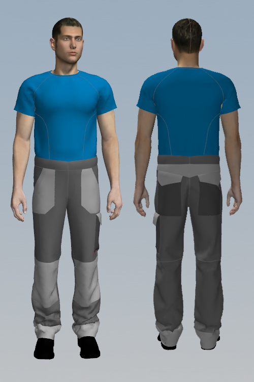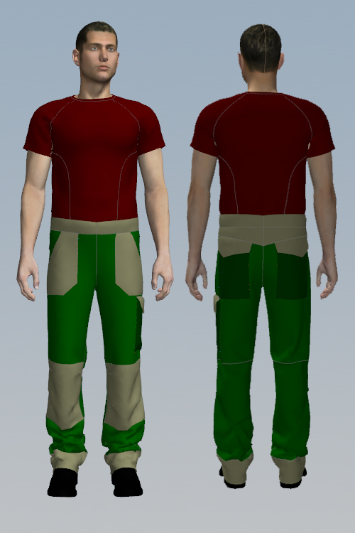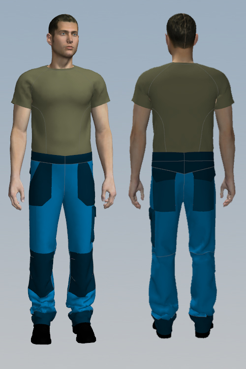 Задняя половинка брюк с кокеткой и двумя накладных кармана с клапаном.