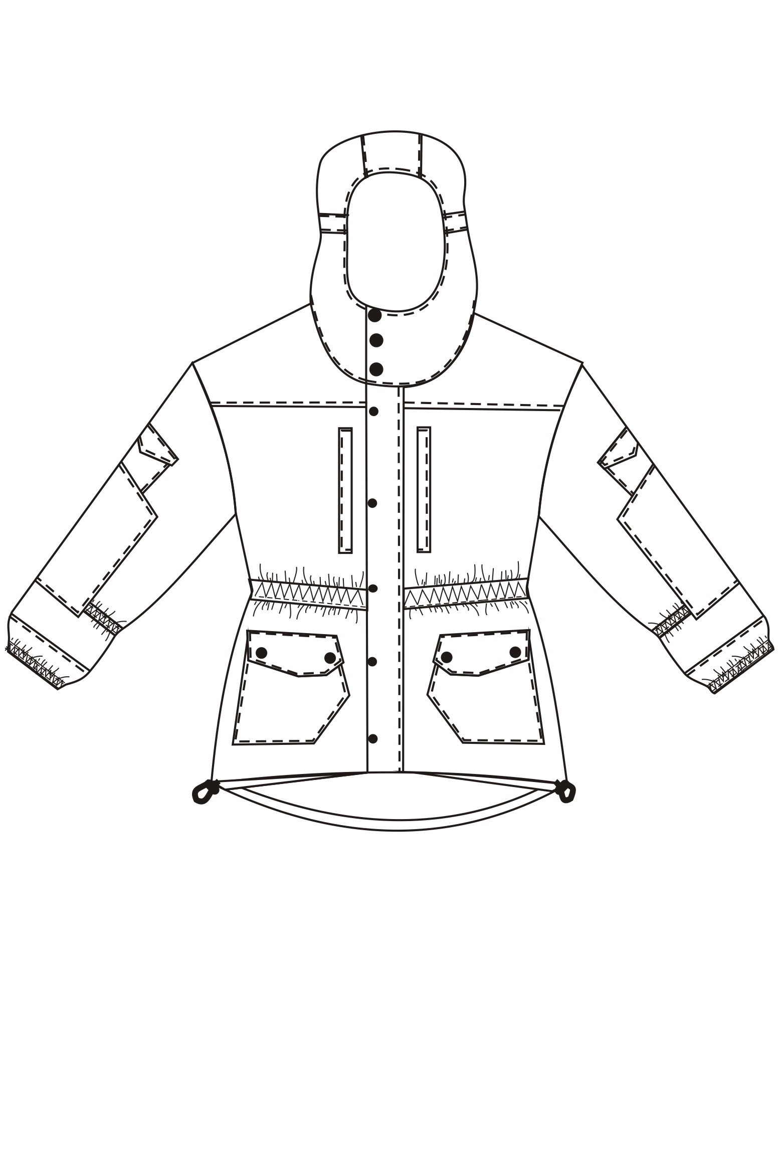 Капюшон шлемовидный с козырьком и регулировкой по обхвату головы.