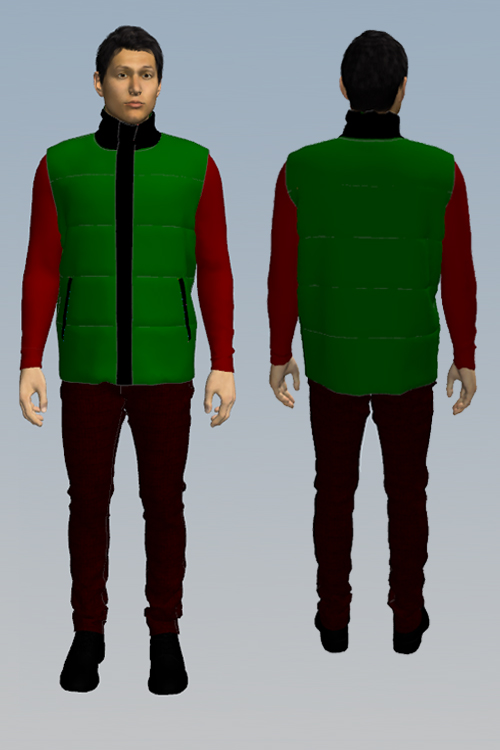Спинка прямая.Застежка центральная доверху на тесьму-«молнию», закрытая ветрозащитной планкой.