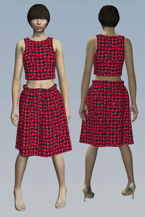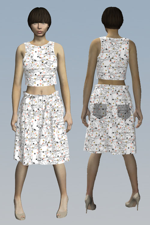Задняя половинка юбки с средним швом, таллиевыми выточками и накладными карманами.