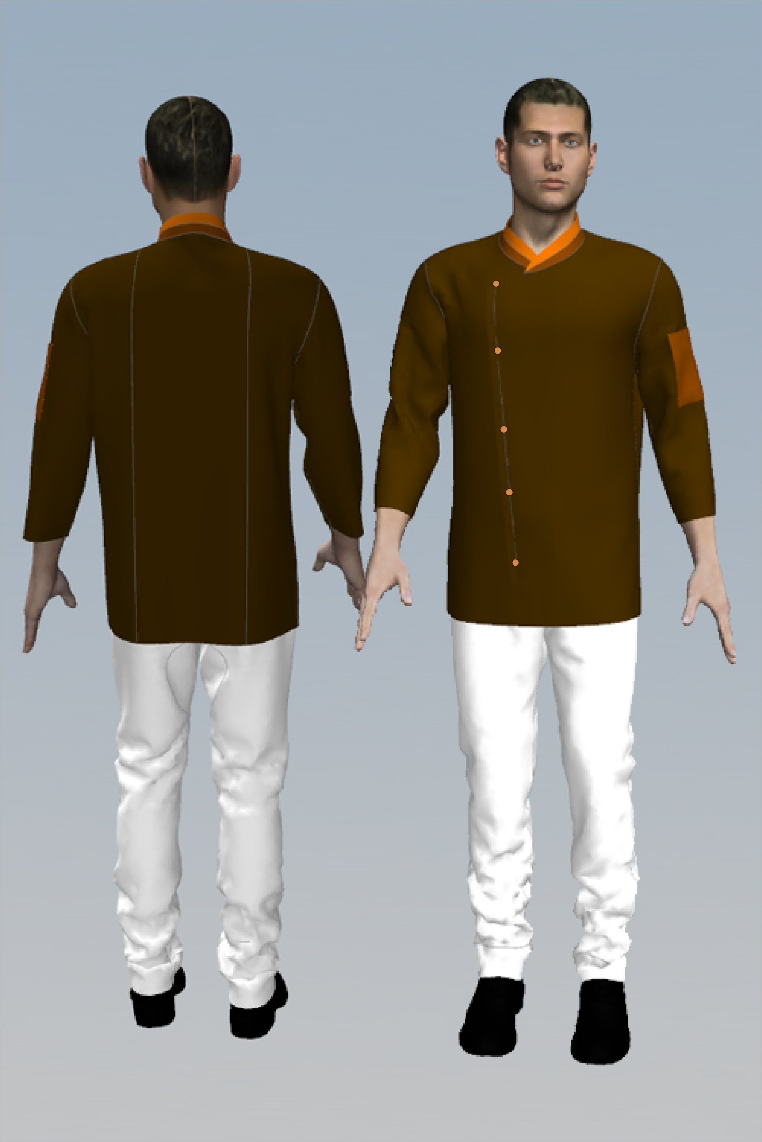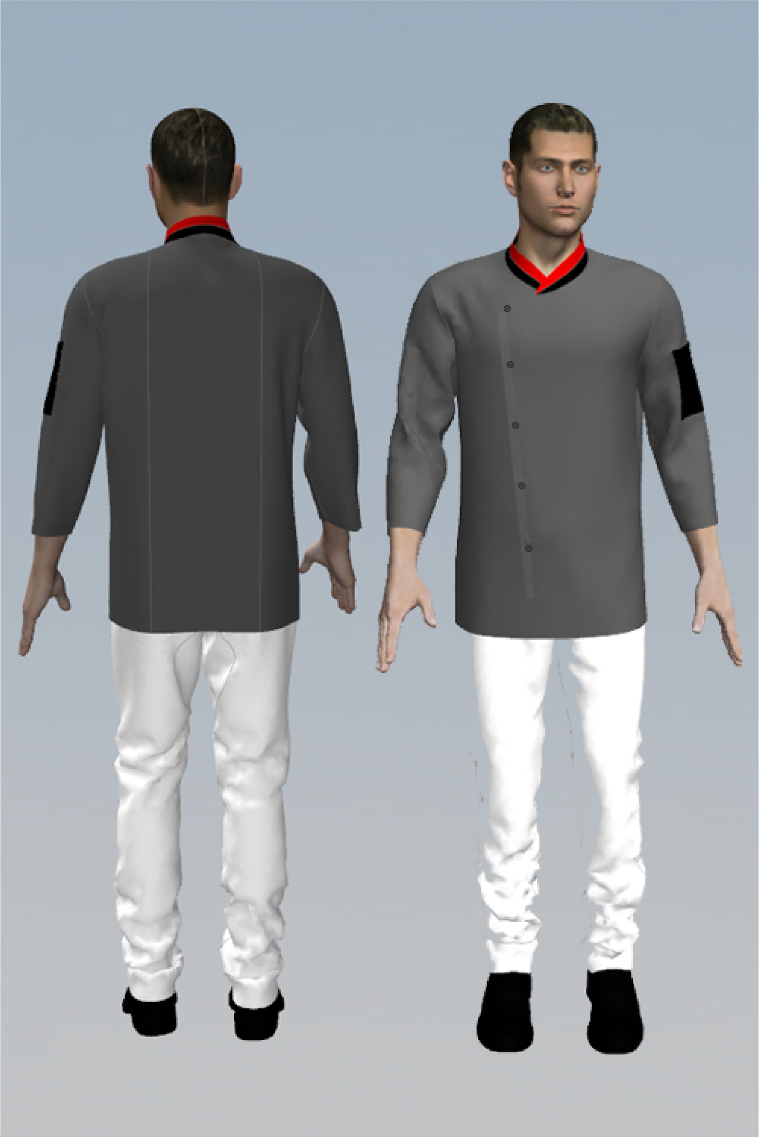 Китель поварской мужской прямого силуэта со смещённой застежкой на кнопках.
