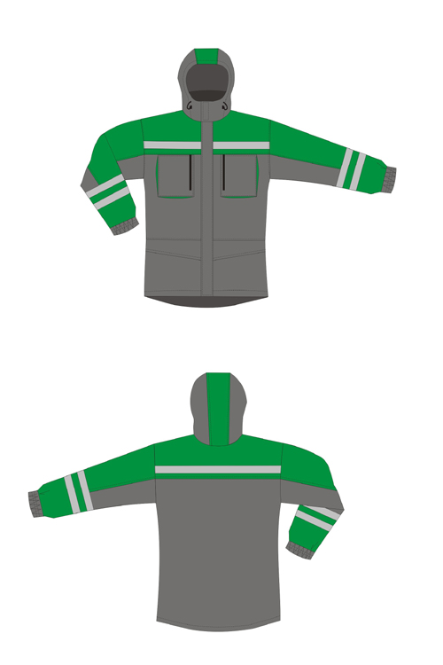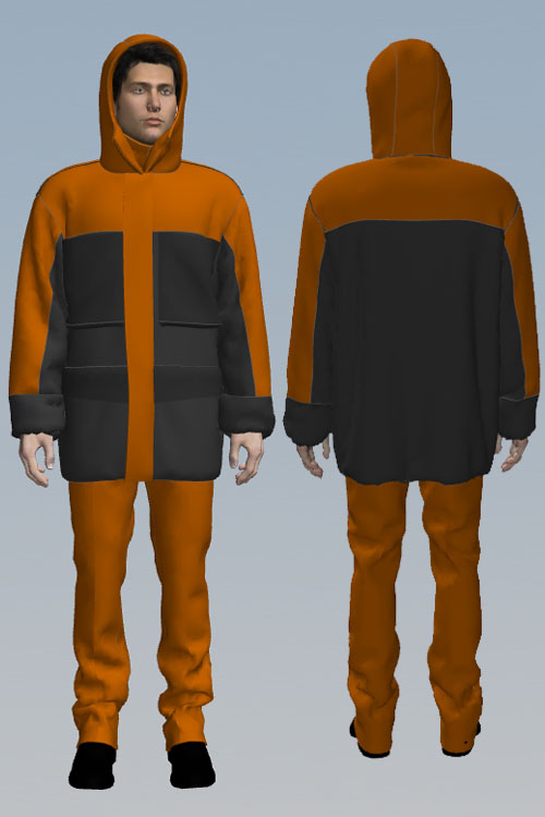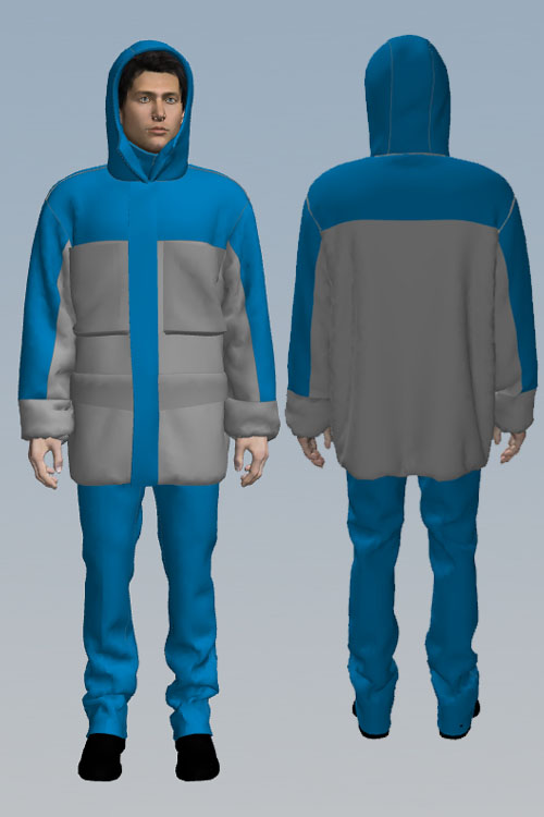 Центральная часть рукава, кокетки, воротник, планка центральная, капюшон и планка капюшона из отделочной ткани.