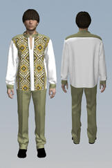 Рукав втачной, одношовный, длинный с разрезом. Разрез обработан окантовкой.