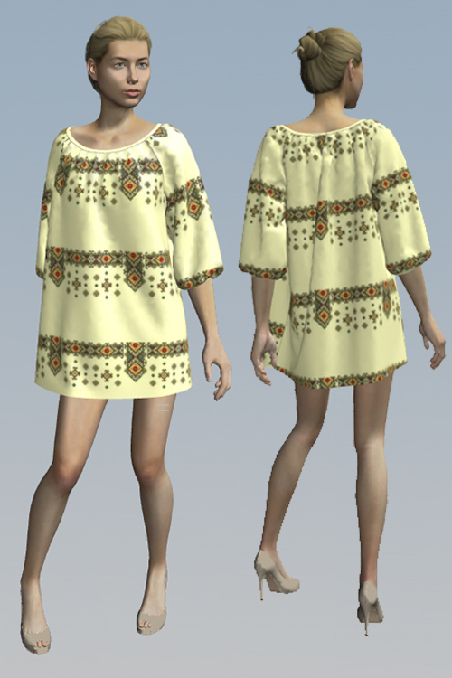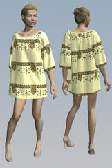 Горловина и низ рукава со сборкой, обработаны окантовкой.