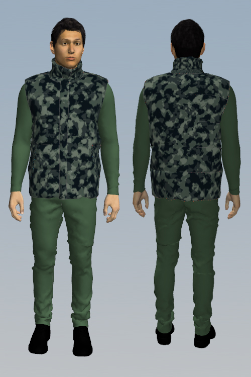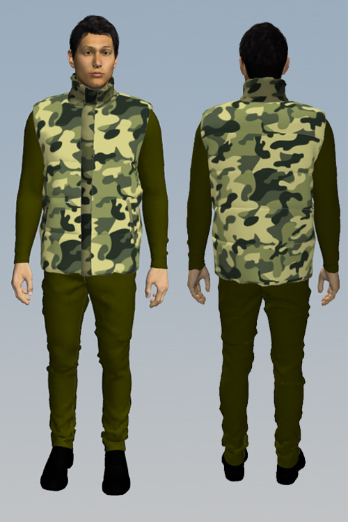 Спинка прямая.Застежка центральная доверху на тесьму-«молнию», закрытая ветрозащитной планкой.
